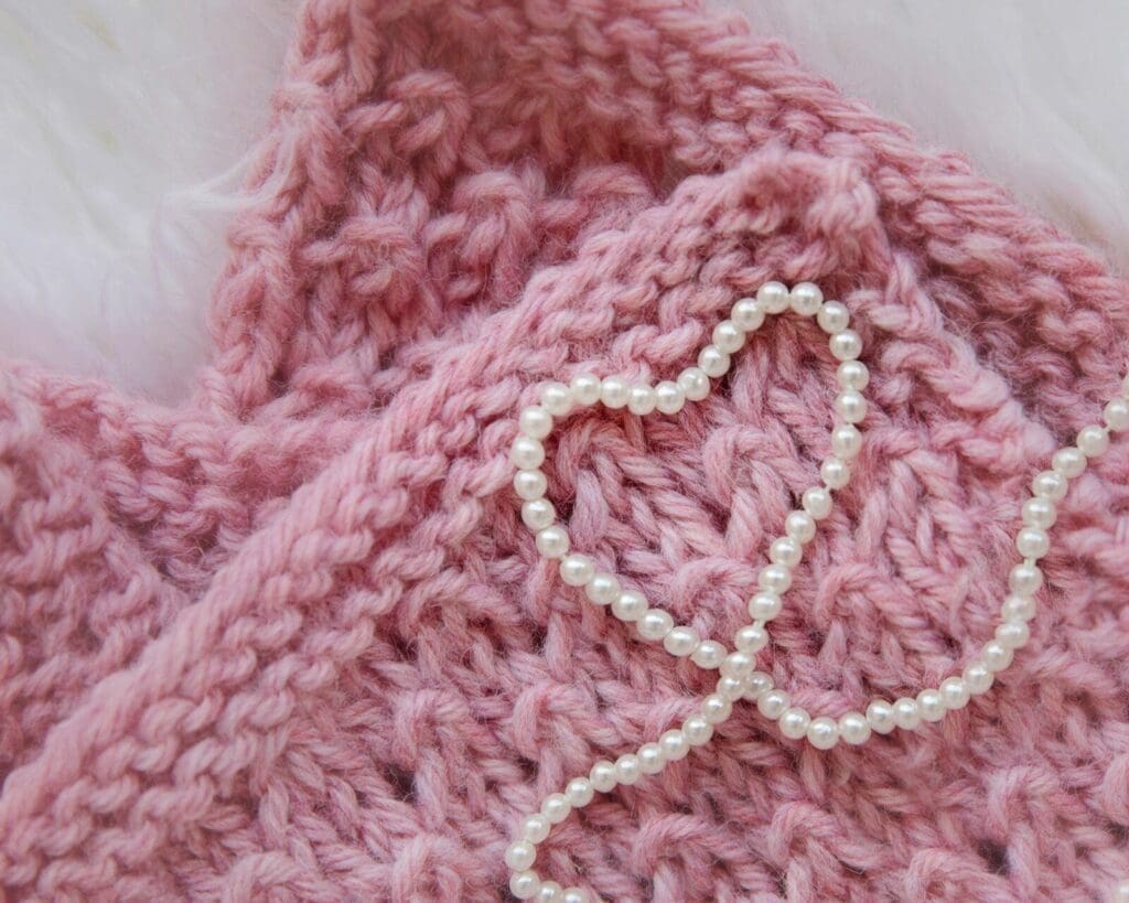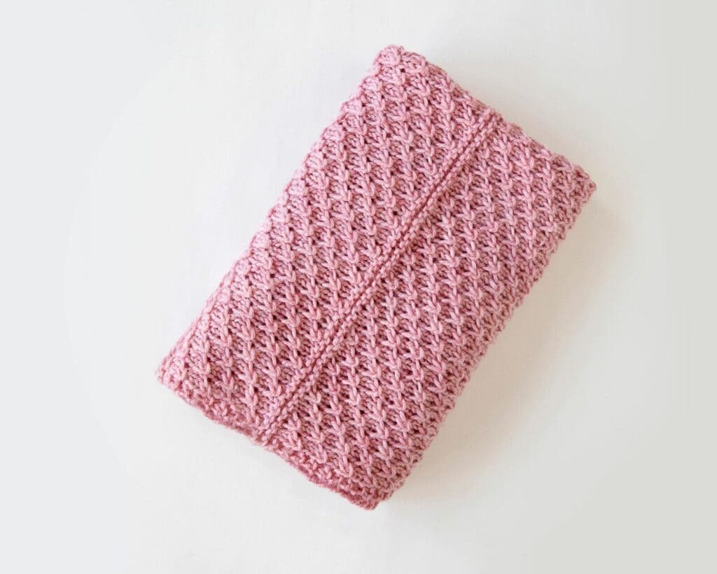 The baby blanket obsession continues! This time, I wanted to make something feminine with lots of texture. Way back when I was expecting with my daughter (almost 10 years ago!), I searched and searched for the perfect girly baby blanket knitting pattern. There were so many that I loved, but I found the stitch patterns way to complicated for my pregnancy brain to keep track of. I just wanted something simple and easy to follow. I ended up crocheting a blanket because I find crochet less complex when it comes to lacy/textured designs.