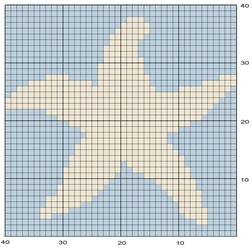 With Main Color, CH 41 (40 plus 1 for turning chain). Work all stitches in single crochet (plus one turning chain at the end of each row). Follow color charts below starting at bottom right for row 1. Each cell represents one SC and each row represents one row of crochet.