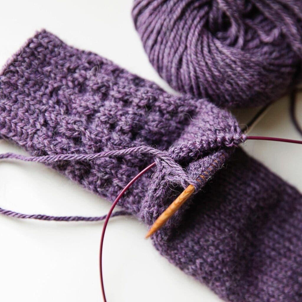 - Knitting in the round on double pointed needles, or with circular needles using the Magic Loop method.