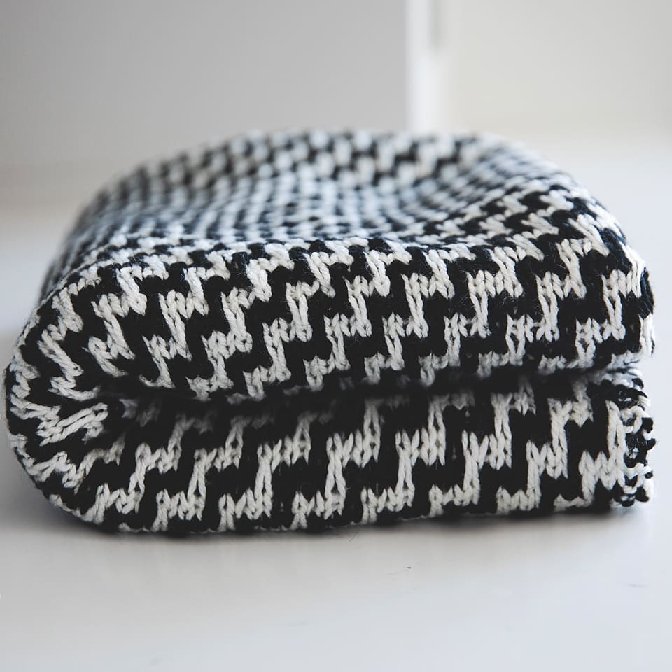 For this blanket pattern, I decided to go with a high-contrast black and white combination. It gives the blanket a striking look that fits right into any contemporary space — especially if you’re into the minimalist aesthetic (or just have pets who shed like mine and need a forgiving color palette). That said, feel free to play around with the colors! You could go with soft neutrals like oatmeal and cream for a more subtle vibe, or even try a moody forest green with heather grey. I also think a warm terracotta and blush pink would look stunning for a cozy boho feel -which I also LOVE.