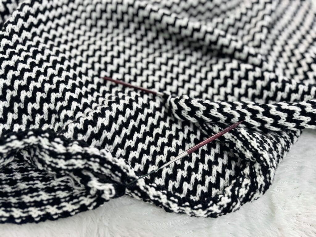 If you’ve been following my content for a while, you know I love to add texture to my knitting patterns – especially when it looks complicated but is actually really easy to knit. That’s exactly what I had in mind when designing the Kensington Throw Blanket! This modern blanket is knit using slip stitch color work (aka mosaic knitting), which sounds like an advanced technique but is basically just slipping stitches and working with one color at a time.